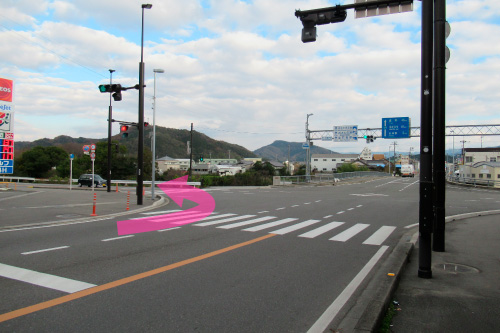 【海南市・紀の川市方面】 五色台聖苑の看板のある交差点を南に曲がる。 |