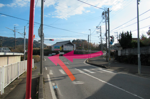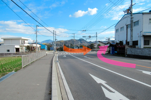 【紀の川市貴志川方面から】 三叉路を西に曲がる。 |