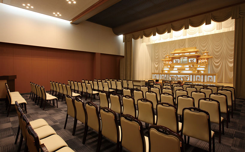 葬祭式場として通夜から告別式までの葬儀が行える、70人収容の祭壇設置済みの式場1・2(洋室)2室と30人収容可能な式場3(和室)が御座います。それぞれにホール、遺族控室、僧侶控室が附属しております。 宗旨、宗派を問わずご利用可能となっております。